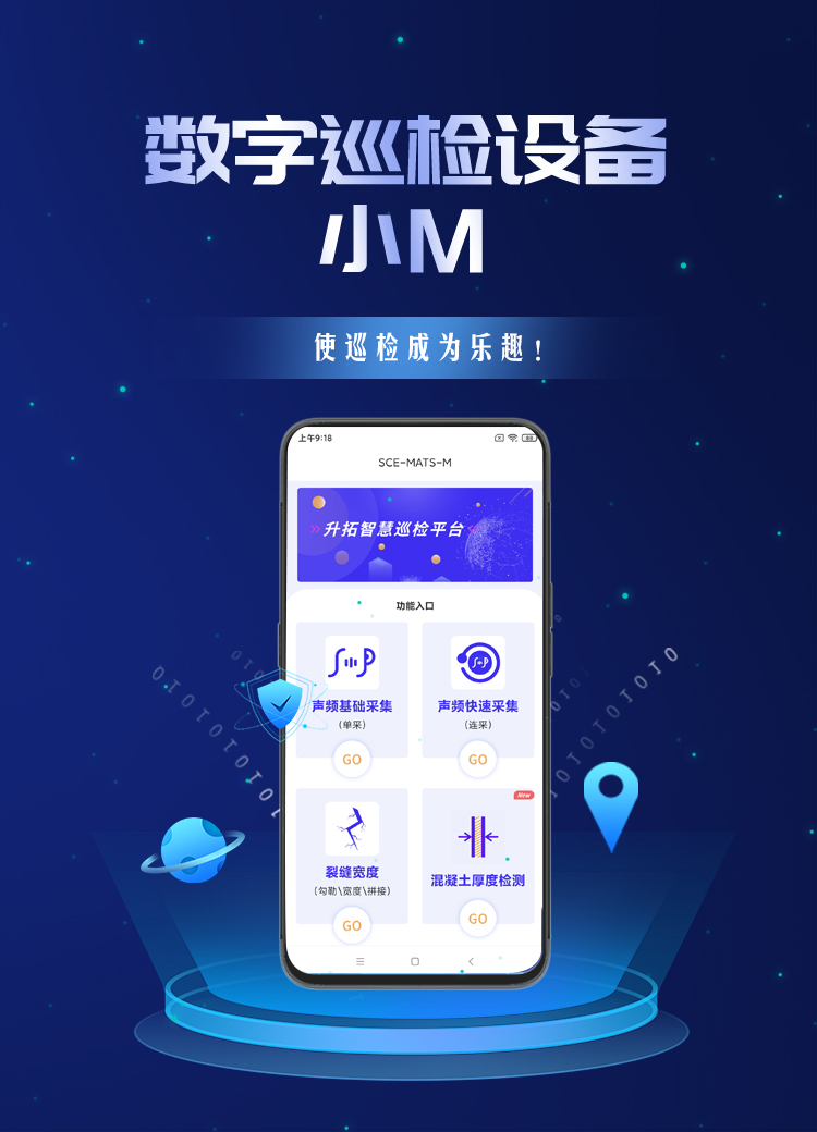 针对监理、检测、监管和养管机构及相关人员,以智能手机为平台,基于内置的声、光、图像采集装置及外接端口开发的工程智能巡检设备体系,可方便、快捷地测试常用技术参数。