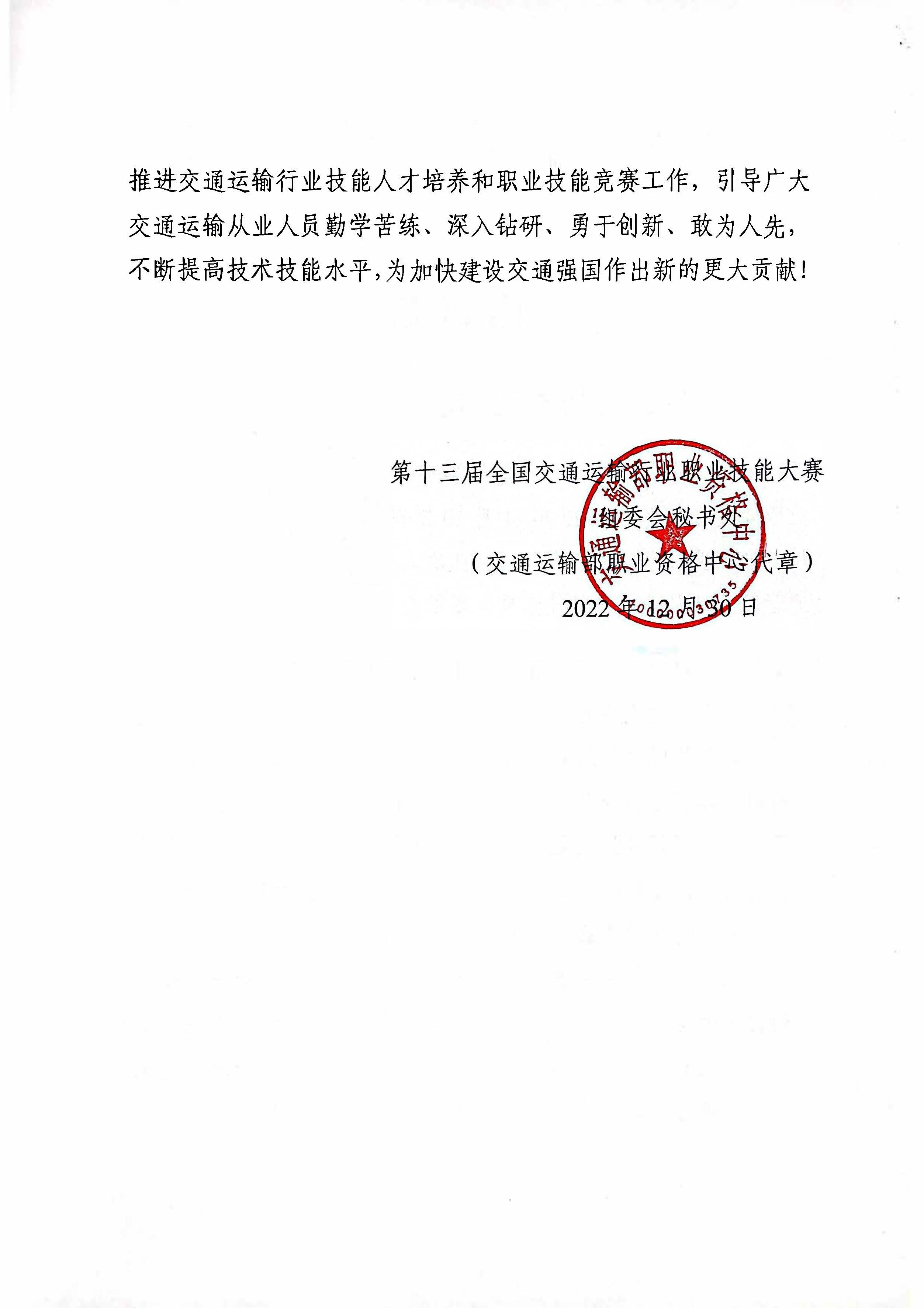 责任与担当丨来自交通运输部职业资格中心的感谢信